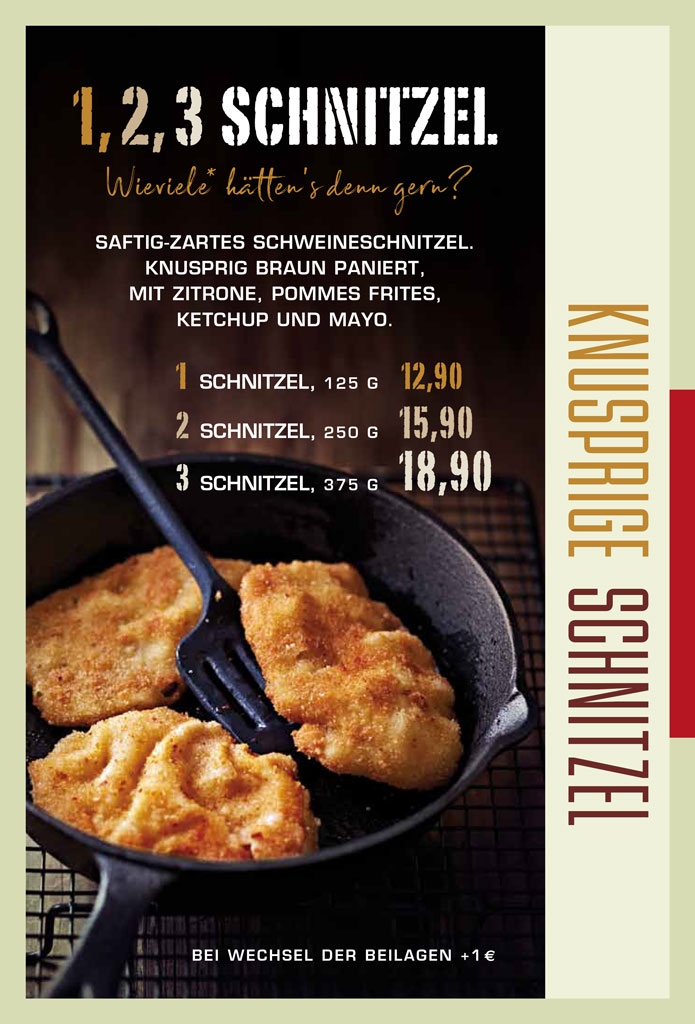 1 Schnitzel mit 125 g für 12,90
