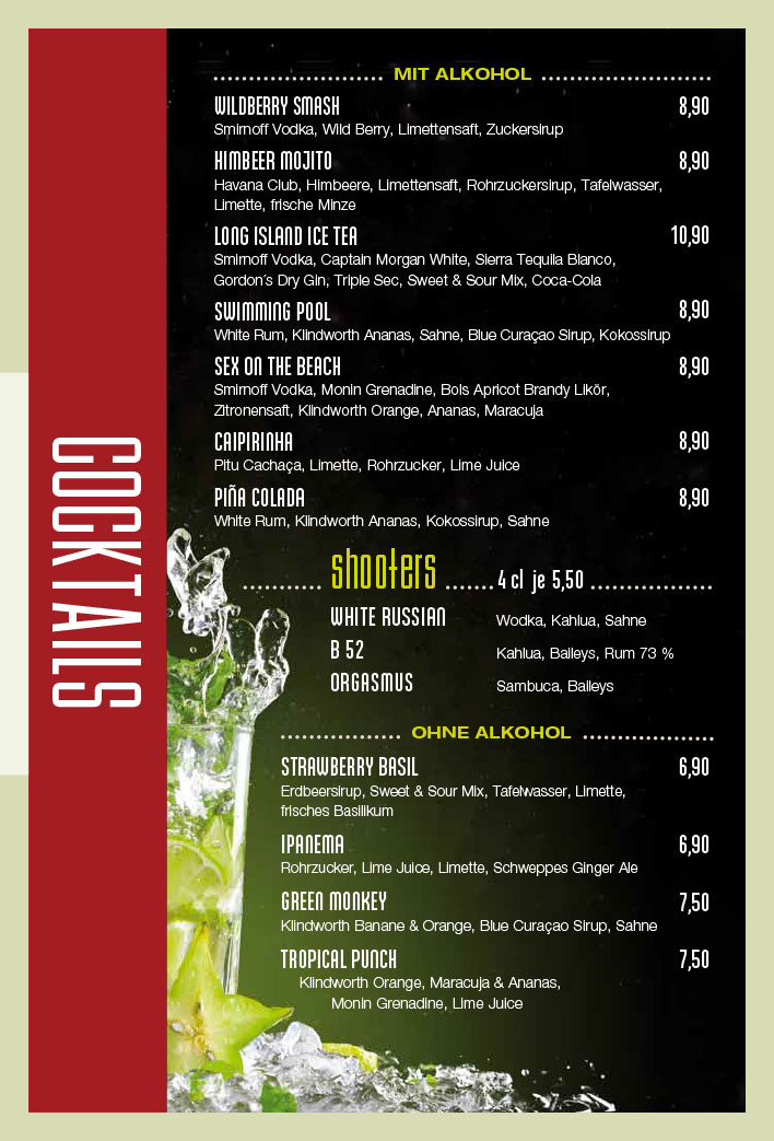 Dazu passt vorweg oder danach einer unserer köstlichen Cocktails.